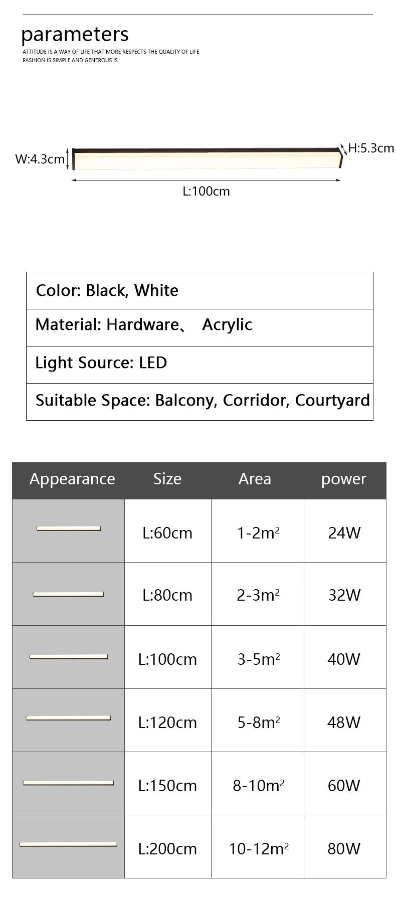 Modern Waterproof Outdoor Long Strip Wall Light simple LED courtyard balcony garden wall lamp Wrought Iron IP65 Porch Wall Light