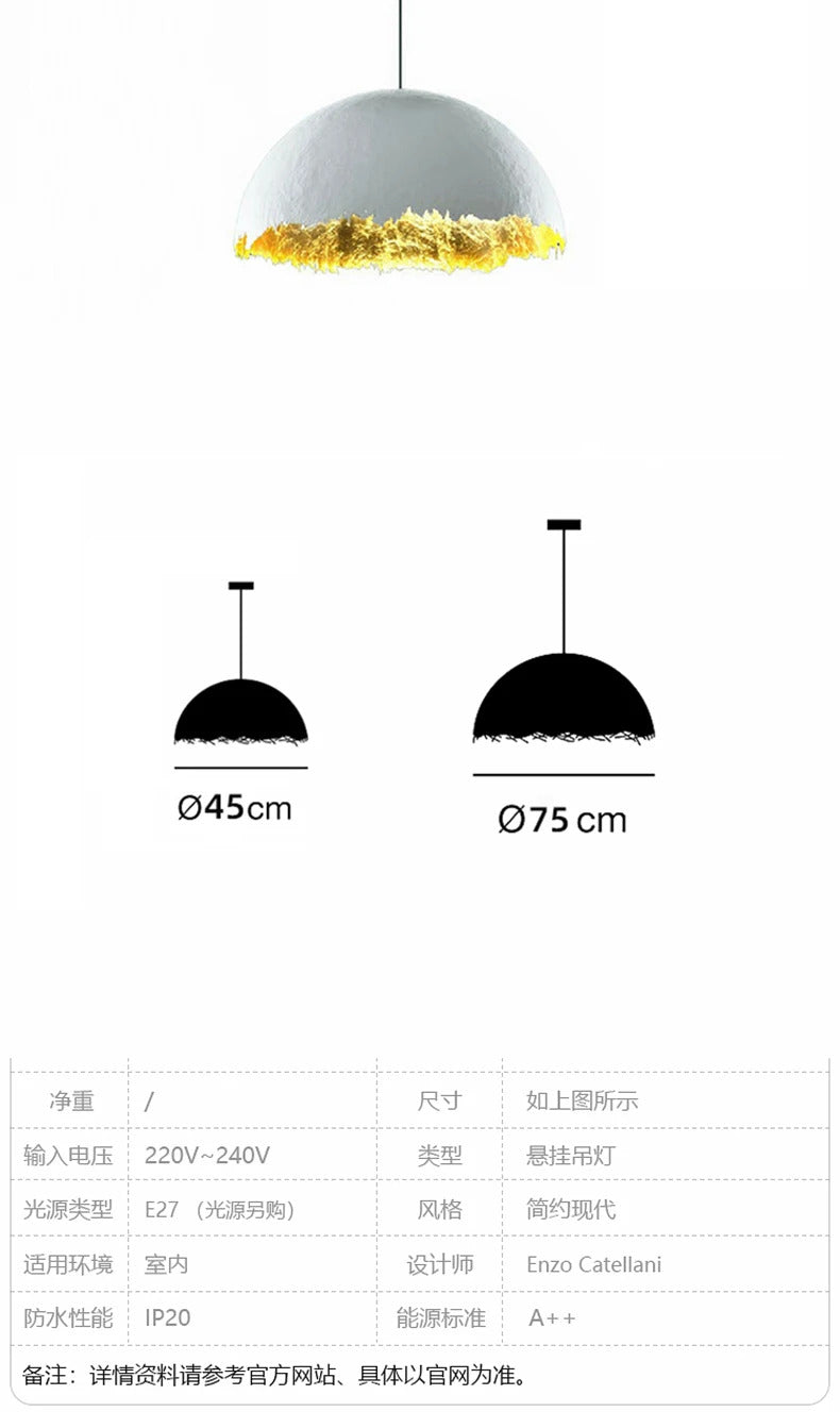 PostKrisi Pendant light Nordic eggshell Round Gold Foil Pendant lamp