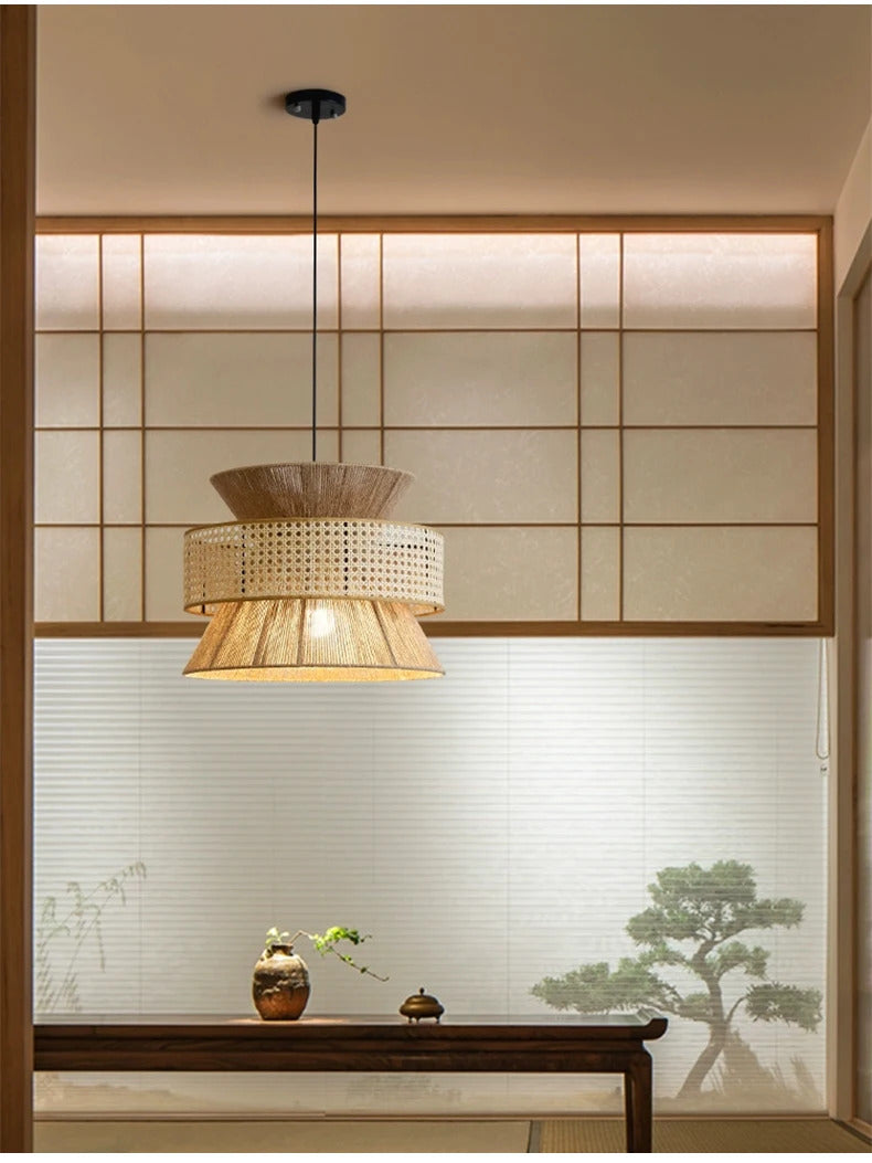 Vintage Wabi Sabi Chandelier Handmade Hemp Rope Pendant Light