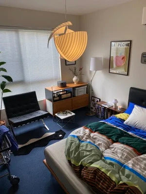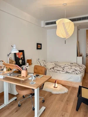 On the one hand, its asymmetric shape provides a different vision depending on your position. On the other hand, the Japanese Washi paper gives the piece a lightness that allows constant movement.