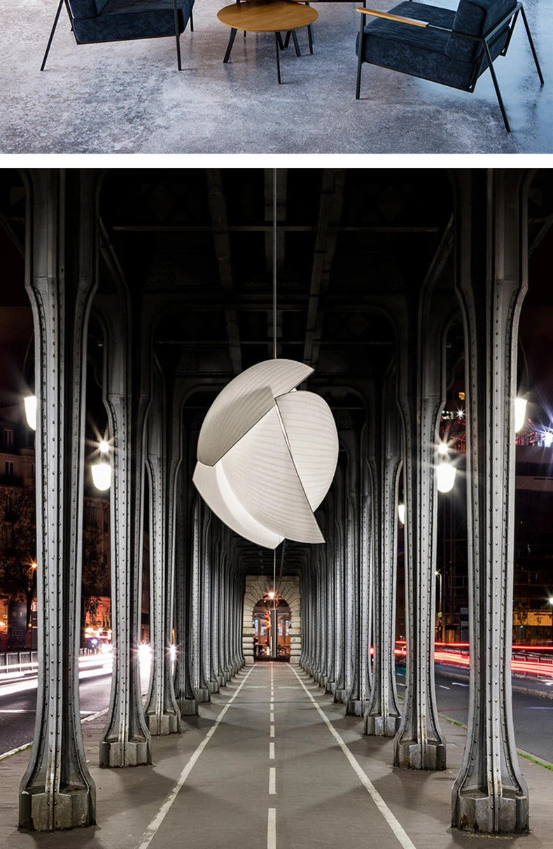 Voiles is a pendant lamp in Washi paper and chrome steel.
